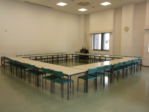 常設設備:スクリーン、DVD、CD、MD、プロジェクター、マイク、ビデオ、ホワイトボード、パイプイス