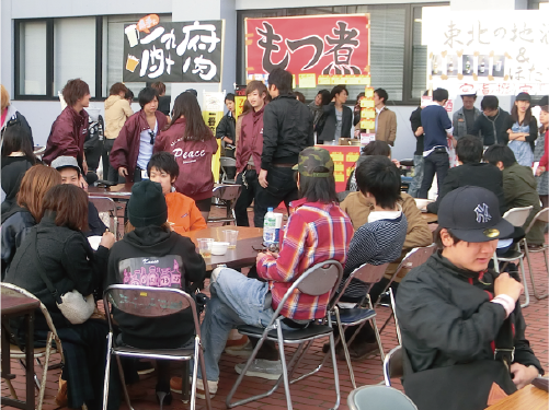 室外酒類提供企画ではペデストリアンデッキ上の5・6号館連結棟前で、屋外の開放的な雰囲気のなか来場者に酒類を提供することができます!