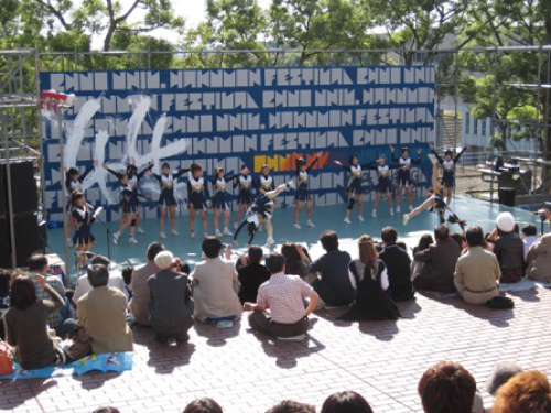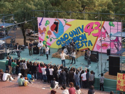 白門祭期間中には大学内に、二つのステージが設置されます。生協前の大階段の「中央ステージ」とクレセントホール前の「第二ステージ」の二つです。各ステージでは毎年、音楽系サークルの方々がライブを行ったり、ダンスサークルによるパフォーマンスが行われるほか、居合道部の演武など実に様々な企画が行われています。
