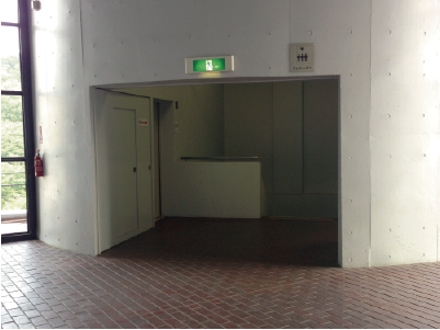 階段の右手にエレベーターがあるので、そちらを利用して2階におりてください。