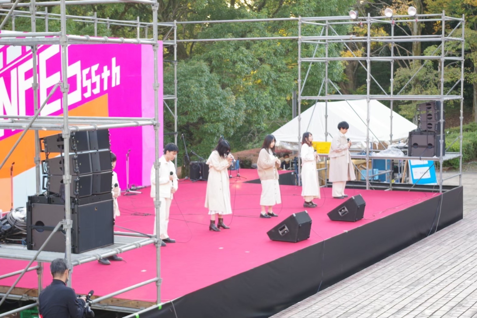 白門祭には中央ステージ、第二ステージの2ヶ所のステージが設けられており、それぞれのステージで学生バンドやダンス、チアリーディング、武術のパフォーマンスなどが行われています。ステージ前は常に多くの人であふれ、毎年大盛りあがりです!